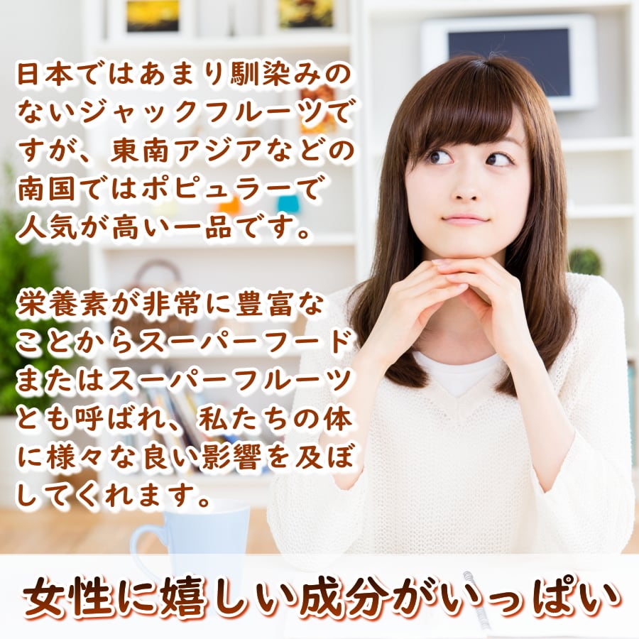 じっくりと低温乾燥されたジャックフルーツのドライフルーツは、酵素も生きているため元気いっぱい。ジャックフルーツは、【スーパーフルーツ(スーパーフード)】と呼ばれる果物で栄養素がとても豊富。