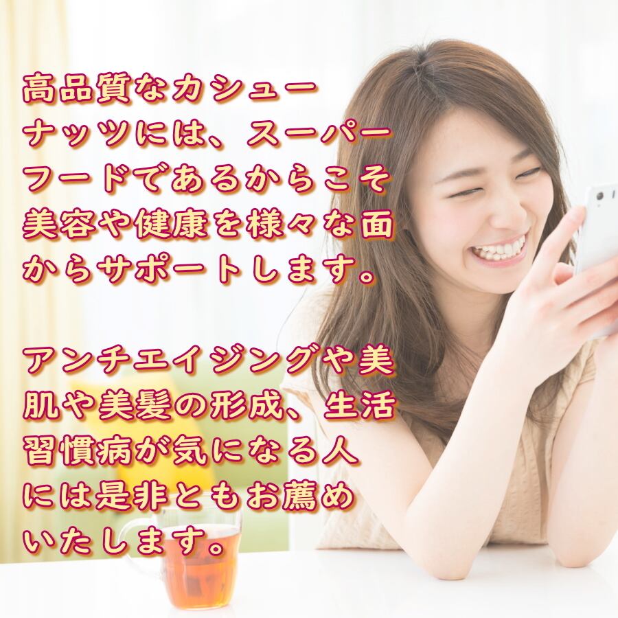 カシューナッツは、高栄養価で小さい1粒の中に沢山の栄養素が詰まっています。カシューナッツは美容や健康などのサポートとして期待ができ、老若男女問わず幅広い層から注目が集まっています。